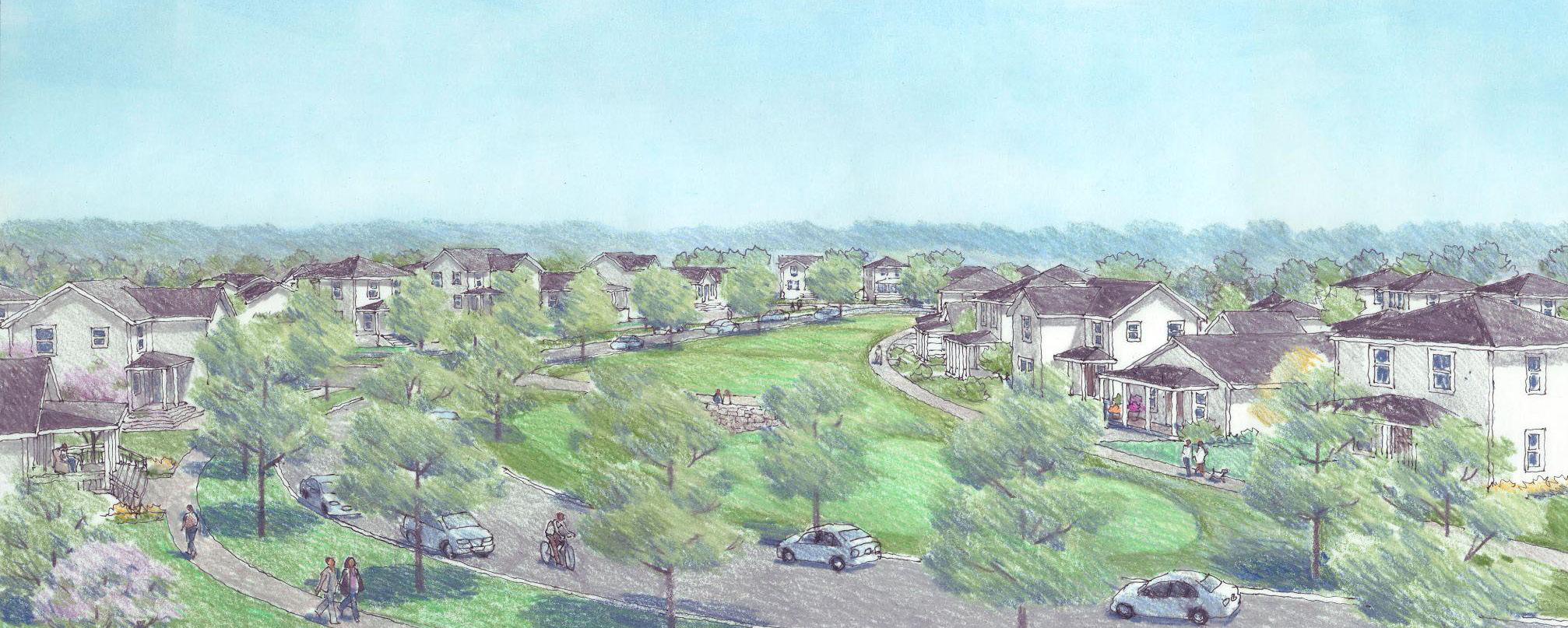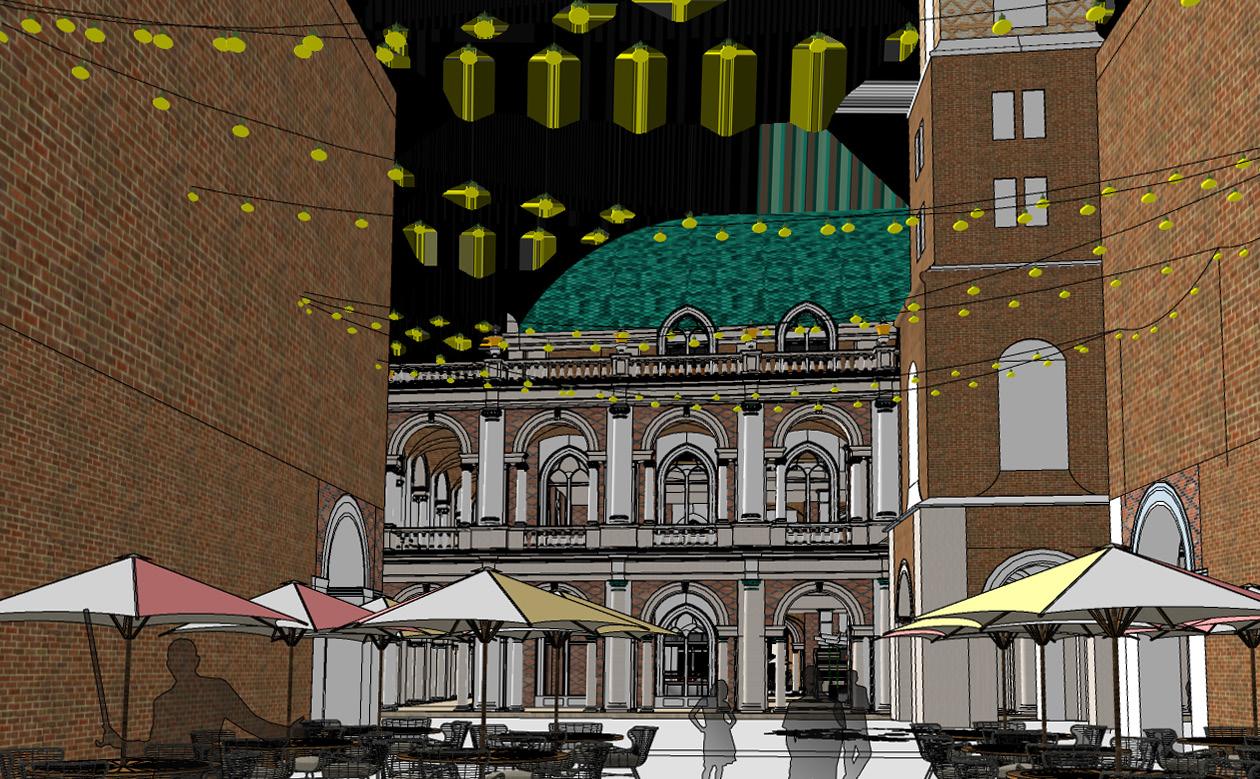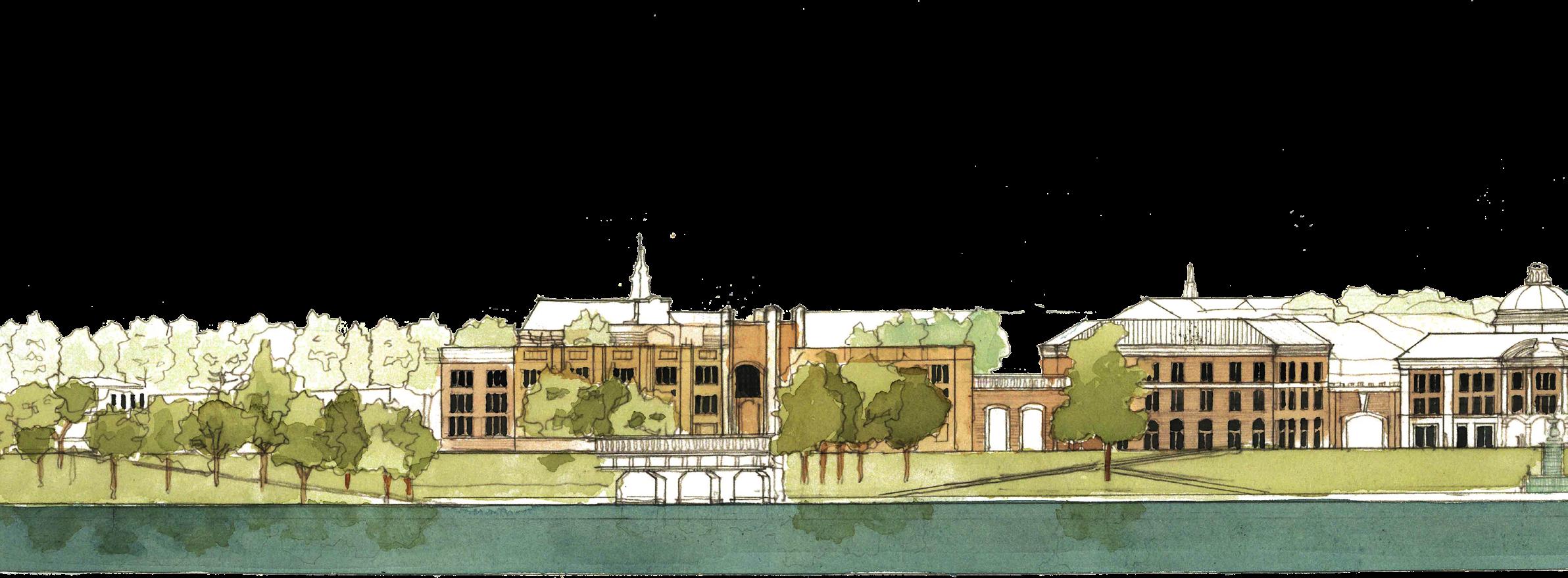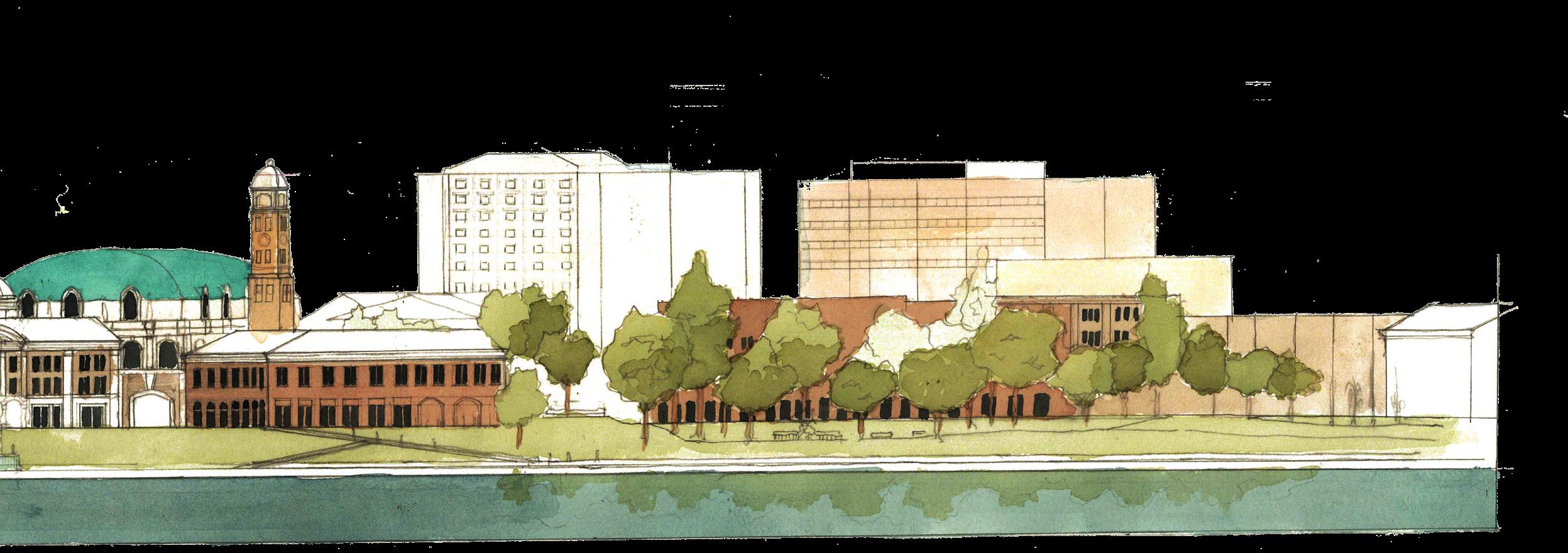 perspective view of proposed masterplan. This image is used for context only. The author did not contribute to its creation but was part of the overal team. Image courtesy of University of Notre