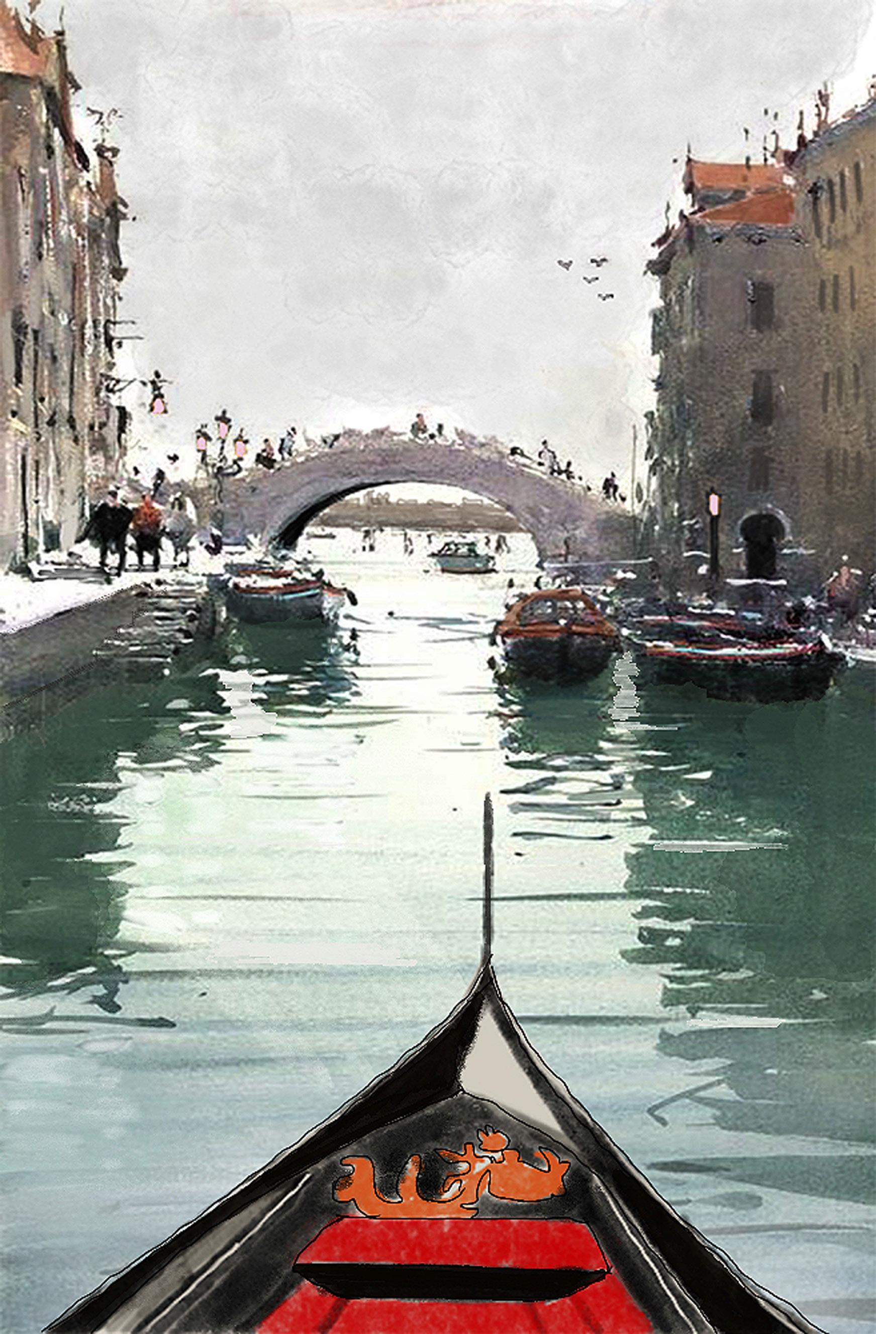 Right: A master repaint and element additions of venice canal street. (Original painting by Joseph Zbukvic)