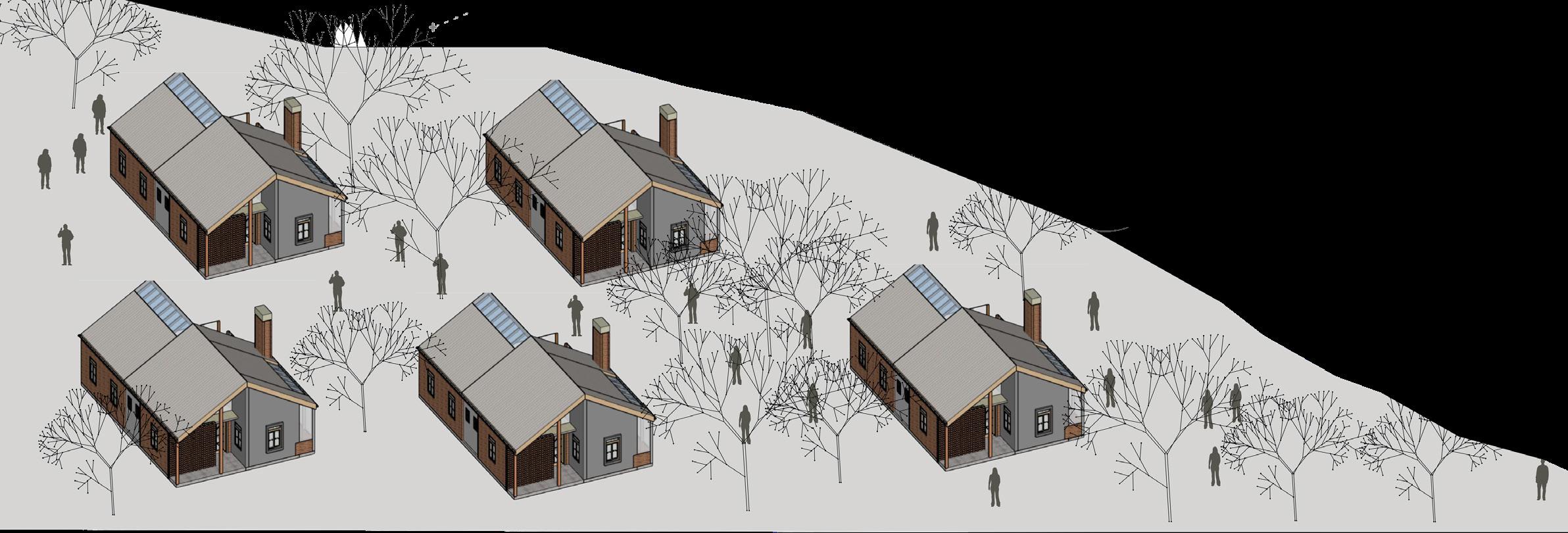 The project is designed to provide affordable temporary housing for families displaced by natural causes like famine or floods in arid to semi arid areas of developing regions. The design features a a free floorplan flexible to accomodate a living room, two bedrooms, a kitchen and washroom. Sustainable water collection, passive ventilation and lighting improve self-reliance and user comfort. material and construction simplicity reduces construction cost and allows inhabiting family to add second phase attachment.