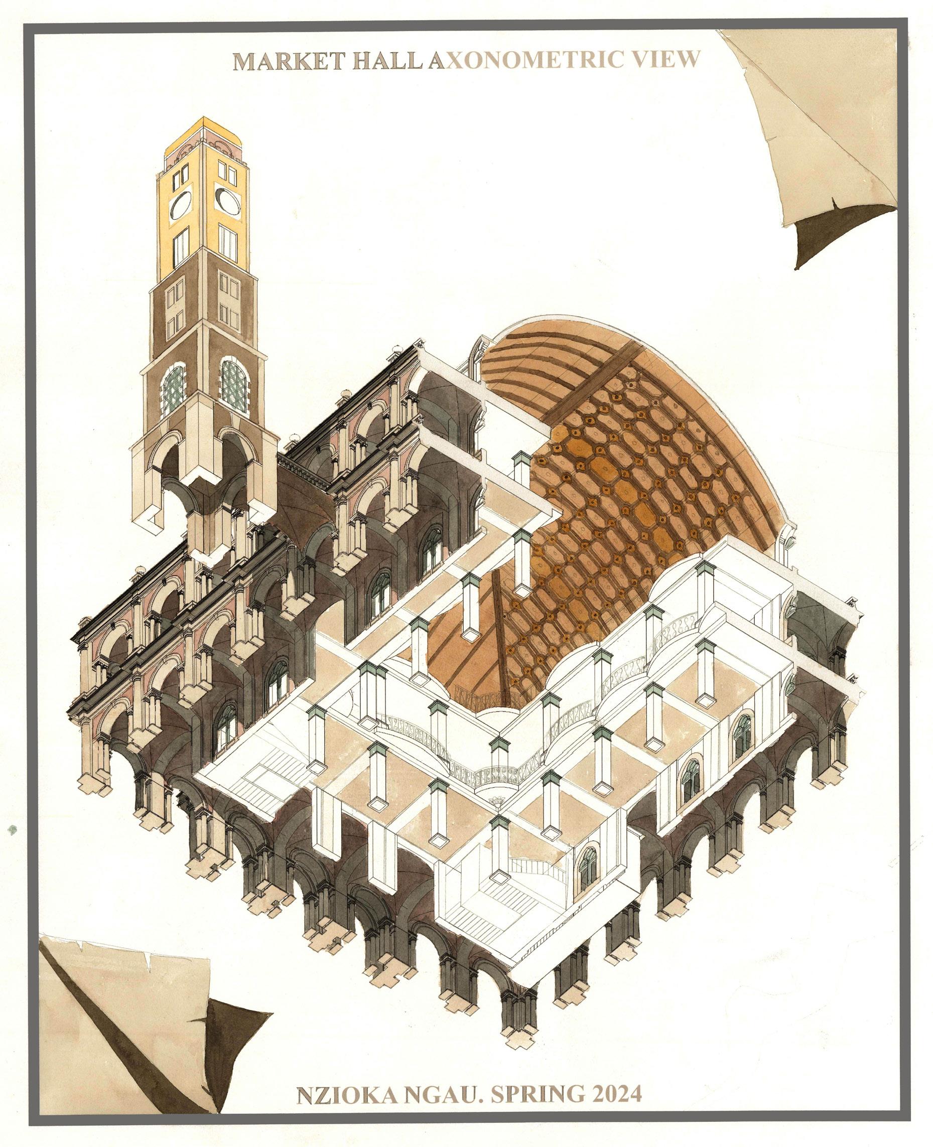 Originating from the spacial uses of the palladian basilica in Vicenza, The Basilica concept proposes flexibility of market halls to serve more functions. A basilica may primarily feature market activity on the first floor and civic and social functions on upper floors.