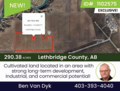 115 acres with 86 acres permanent water rights. 4 homes and large shop, outbuildings. North Lethbridge area.