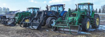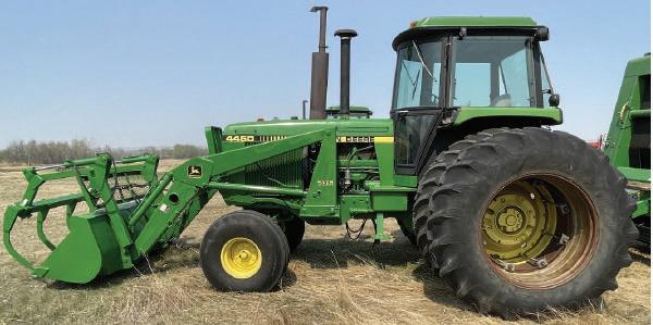 ●1984JOHNDEERE4450tractor w/JD725FEL,7ft.bucket& grapple,12,078hours,150hp.,powerquad,20.8-38dualsw/new innerreartires,joystick,3hyd’s.,540/1000pto.●JohnDeere158 FELw/7ft.bucket&grapple.●1962DavidBrown990tractor,52hp., diesel,540/1000pto.,6F/2R.,3pt.hitch.