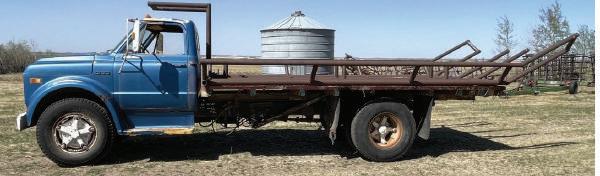 ● 1970ChevroletC50 s/atruckw/hoist&self-unloading8roundbale haulingdeck,350gas,5F/1R,10.00R20tires,89,161miles.
