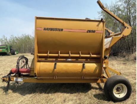● HAYBUSTER2650baleprocessor, RHhydraulicdischarge,newtires, 1000pto.