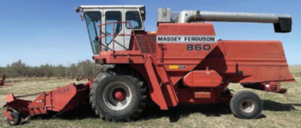 ● MASSEYFERGUSON860s/pcombine w/MF9001p/uheader,4,243 hours.,grainlossmonitor,6speedtrans.,chopper,shedded.