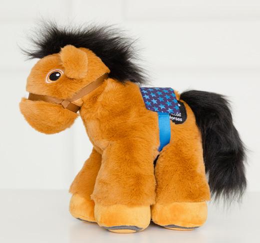 Our English horses are 14 inches of luxuriously soft fabric and include a custommade saddle, embroidered eyes and shoes, and a black-and-white gingham show ribbon. Each horse includes a code hidden in the saddle to reveal its unique name.