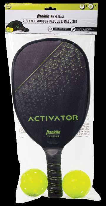 21 2023 WOOD CORE WEIGHT HANDLE PADDLE 10.6–11oz. 4.75in. 8 x 15.75in ACTIVATOR TECHNOLOGY Includes (2) X-40™ outdoor pickleballs 52740 GREEN 52741 BLUE 52742 2 PLAYER SET 6 PACK DURABLE EDGEGUARD COMFORT CUSHION GRIP WOOD CORE/SURFACE JET ALUMINUM PADDLES