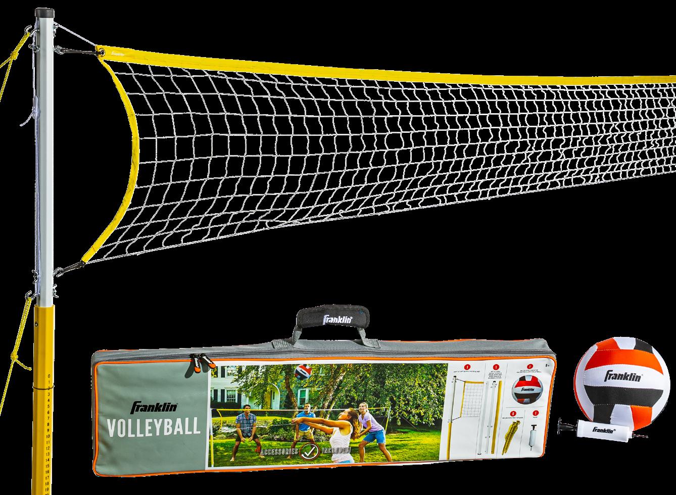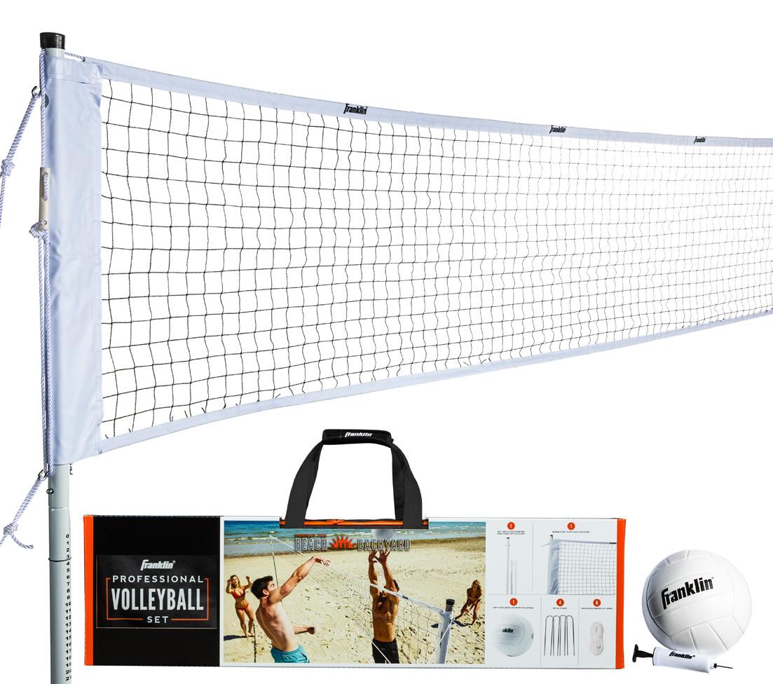 NET: 20’ x 1.5’ POLES: 1.25” VOLLEYBALL: 1 STAKES: 8” INFLATING PUMP PACKAGE: Carry bag with handle • • • • • • FAMILY VOLLEYBALL