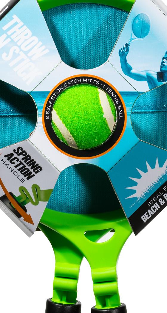 LAUNCHERS: (2) Self stick BALL: (1) Self-stick ball HANDLE: Spring action handle for maximum playability PACKAGE: Peggable wrap •