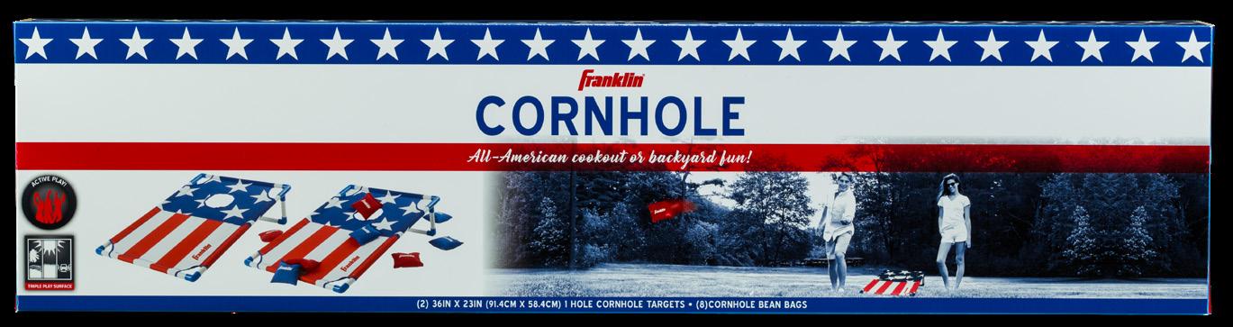 TARGET: (1) 24" x 57" FOOTBALL: (1) 10" x 6" MATERIAL: Lightweight fiberglass frame CARRY BAG INCLUDED PACKAGE: Color box • • • • • NFL QB CORNHOLE ITEM: 53919 PACK: 2 NFL Cornhole is perfect to play solo or with a group of friends! The lightweight fiberglass frame makes for easy set up. No tools are needed so assembly is a breeze. Be sure to utilize our carry bag and bring NFL cornhole wherever you go! 27