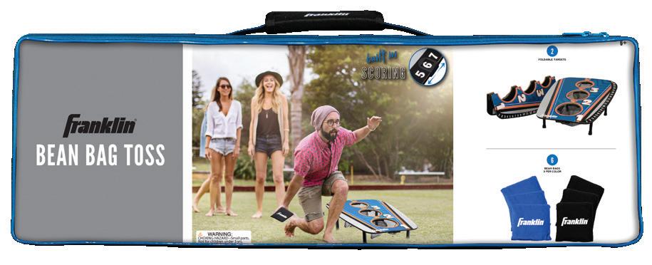 TARGET: (1) 31" x 33" BAGS: (6) 4" x 4" COMPACT Folding leg design PACKAGE: Reusable box with handle • • • • BEAN BAG TOSS ITEM: 53970 PACK: 2 X3 X3 6+ 34