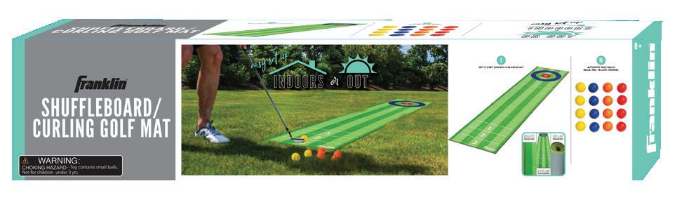 2 in 1 GAME PLAY with shuffleboard and curling options LARGE 10FT LONG playing surface! 16 GOLF BALLS for multi-players GOLF CLUBS not included PACKAGE: Color box packaging SHUFFLEBOARD/CURLING GOLF MAT ITEM: 53980 PACK: 2 • • • • • 8+ 6+ FLOATING WATER POLO ITEM: 53991 PACK: 6 XL SIZED INFLATABLE TARGET: 57" x 25.5" x 33.5" INFLATABLE BALL: (1) 8" PACKAGING: Color box • • • 28