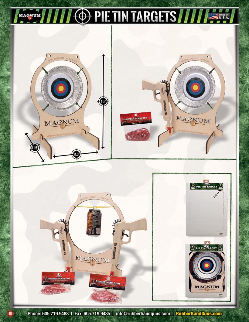 Thank you for choosing The World’s Finest Line & Largest Selection of Rubber Band Gun Pistols, Rifles, & Other Quality Toys! We’re proud to produce the best built and longest lasting guns in the industry. All Magnum 12® Rubber Band Guns are 100% American made using solid poplar hardwood. We now have plastic injection molding capability and are molding all of our own plastic components. Our plastic molds are company owned and we use only the finest materials to produce our trigger sets, sights, barrel tips, and custom rifle scopes. These components are exclusive to the Magnum 12® guns and are not found on any competitor’s products. Our line of Pop Guns feature authentic looking gun handles that are also made of solid poplar hardwood. This All-American made popper is the smoothest operating and loudest popping barrel mechanism in the industry. They are simply the best-of-the-best in the world of pop guns. We also manufacture a full line of wooden swords and axes that are constructed of premium grade multi-ply Baltic birch plywood. Each item is sanded to a smooth finish and printed with a unique name that compliments its styling. Rubber Band Gun targets are also offered to add variety to our line-up. We know you will enjoy a well-engineered product and appreciate our quality American craftsmanship which means a lot in today’s marketplace.
