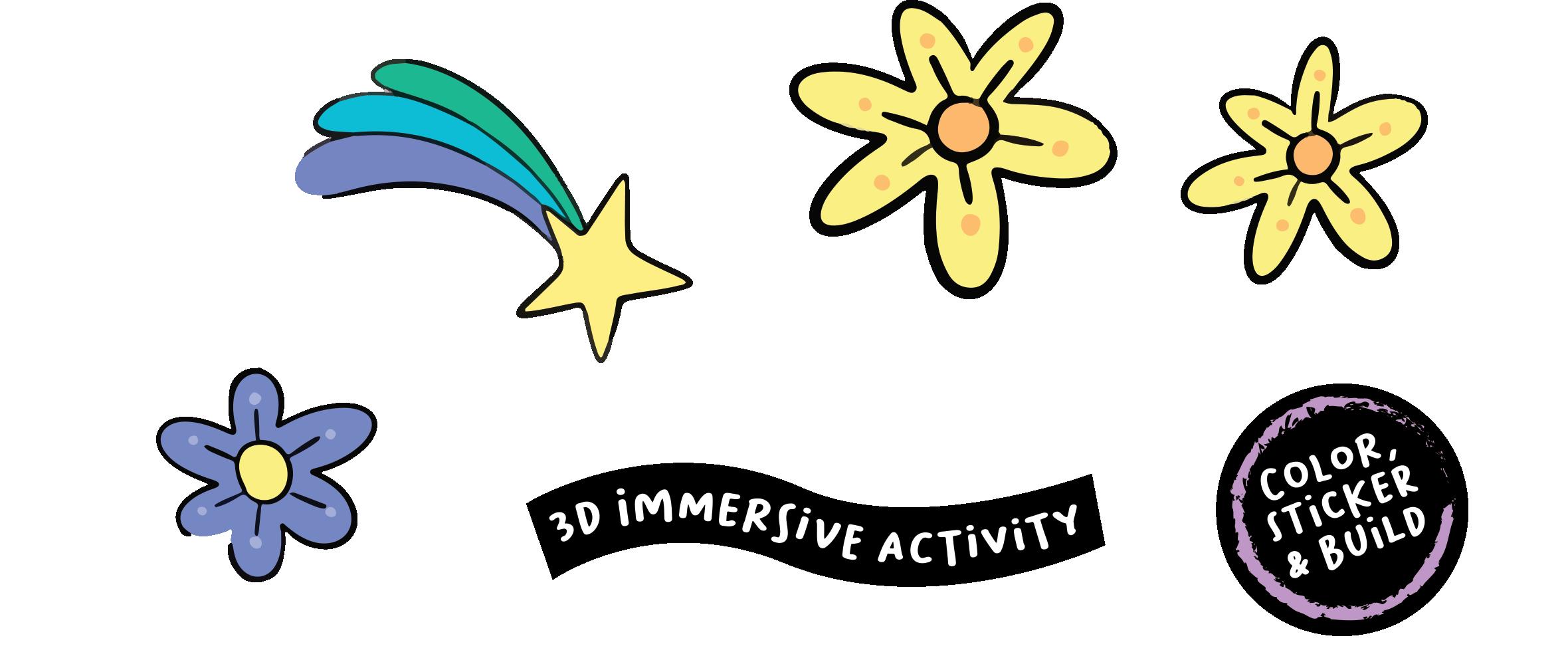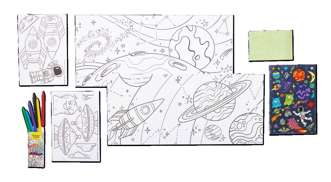We take the coloring trend a giant step further with a sturdy color-in backdrop, 3D animals and colorful sticker sheets.