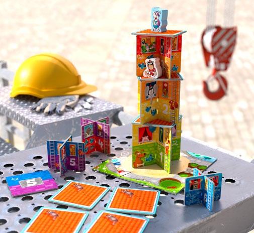 n 306070 Mes premiers jeux –Pyramide d’animaux junior Attention, il va falloir garder son équilibre ! Les animaux forment une grande pyramide. Le dé ou les tuiles “soleil” indiquent qui grimpe sur le dos de quel animal. Mais la tour d’animaux résistera-t-elle ? Aux joueurs de démontrer leur adresse en empilant les animaux les uns après les autres dans ces trois jeux d’empilement. Dans le troisième jeu, ils font même tous ensemble la course contre le crabe. Ces 3 jeux permettent de développer la motricité fine et le doigté. Le joueur le plus adroit l’emportera. Trois jeux d’adresse amusants. Livrable en boîtage français.