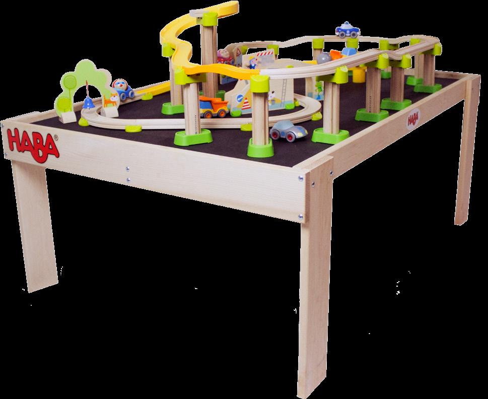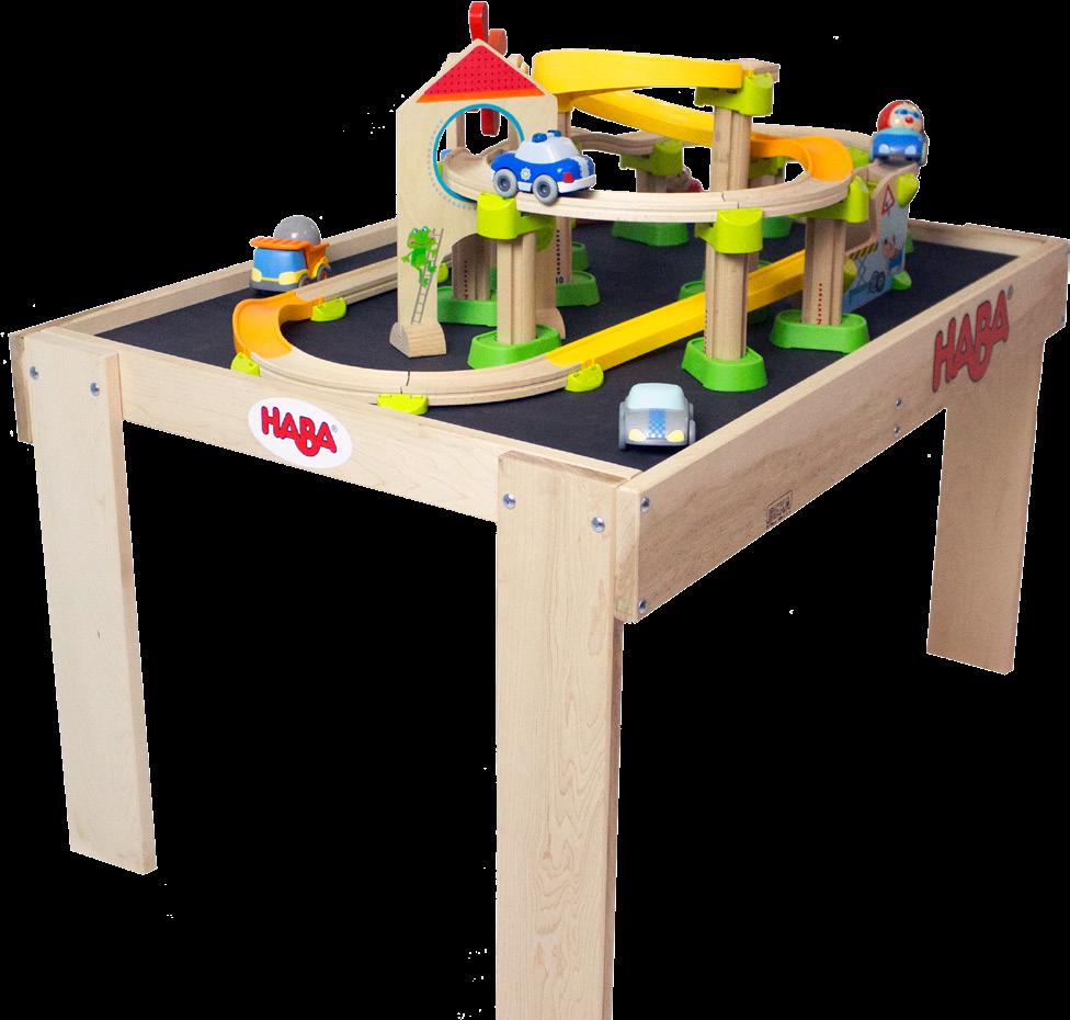 Pick just the right size for your store. HABA offers this “full size“ Demo table to highlight our exciting new brand, Kullerbü. Give parents the opportunity to watch the “power of play“ in action as the children engage with the tracks, cars and balls. Material: birch plywood. Actual samples may be slightly altered from the picture. Dimensions: L 48“ x W 35“ x H 21“.