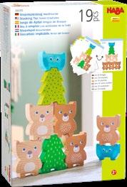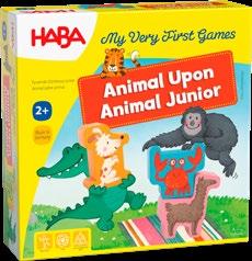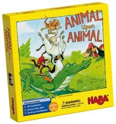 Things are getting wildly wobbly as the animals create a big stacking tower. Who will climb on whom? The die decides. But whether the animal stack stays standing or not is up to the players. They stack Animal upon Animal in three new games for young stackers. In the third game, they work cooperatively to race against the crab, training their dexterity skills with play. May the best stacker win! Three wobbly animal stacking games for young stackers. English packaging.