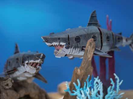 We designed this great white shark based on a real shark. In order to make it closer to a real shark, we added a lot of rotating structures. And our designer gave this shark a realistic color.