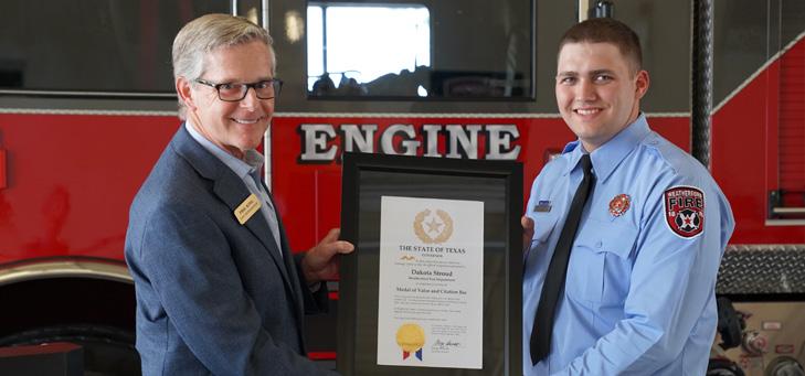 The Weatherford Police Department completed the re-accreditation process for the Texas Law Enforcement Best Practices Recognition Program and retained our Recognized Agency status by the Texas Police Chiefs Association for meeting and exceeding 170 best practice standards. Dylan Swackhammer was awarded the North Central Texas 911 Professional of the Year. TEXAS STATE AMERICAN LEGION OFFICER YEAR Travis McClure received the Texas State American Legion Officer of the Year.