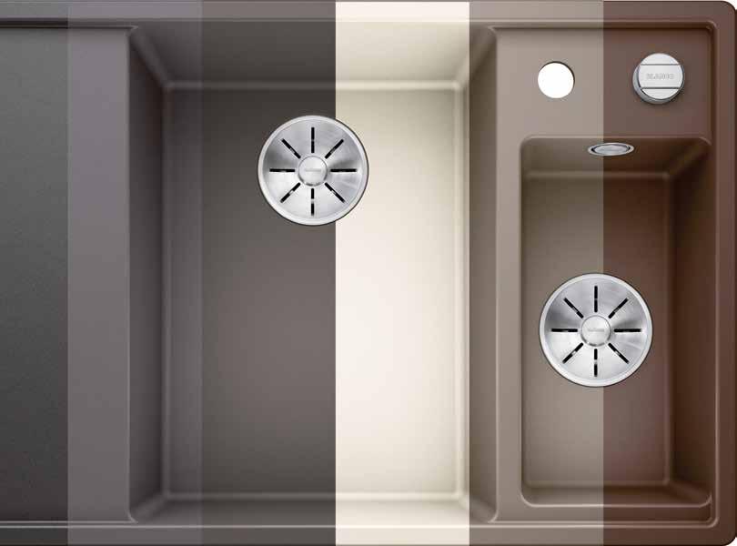 The palette of Silgranit colours runs from monochrome black and white, through on-trend greyscale shades, into warm earth tones.