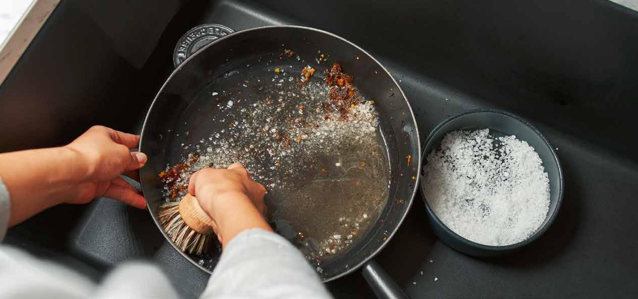 Metal cutlery and pans can leave dark marks on Silgranit when accidently scraped across the surface during typical domestic use, especially the lighter colours. However this is actually the metal from the pot, pan or fork wearing away, rather than the Silgranit. Such marks are easily remedied: