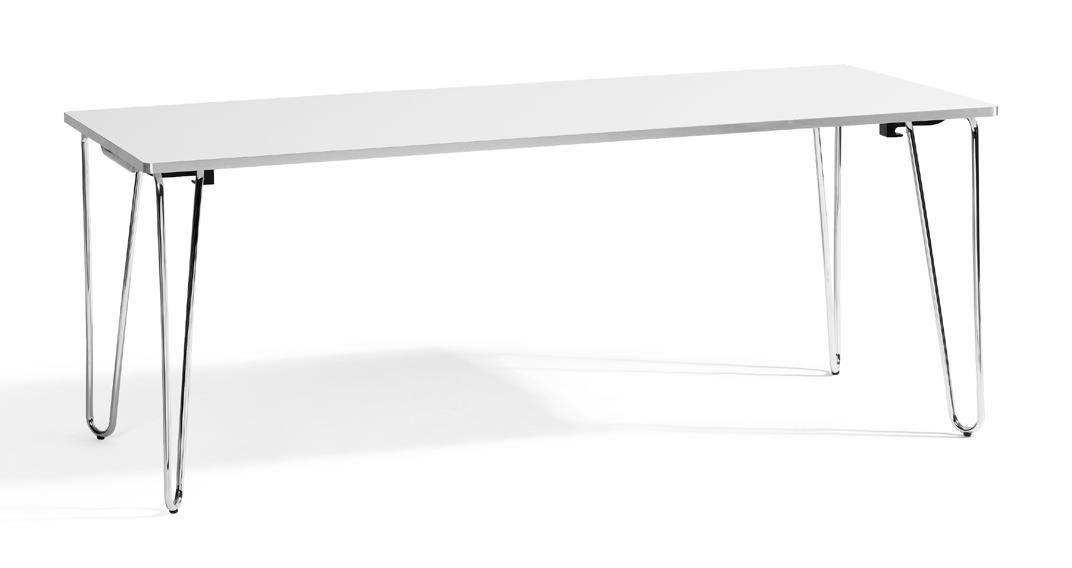 Clip, blev ett smäckert och läckert fällbord med minimalt antal delar. En skiva och 2 par ben inklusive fällanordningen, inga lösa delar och onödigt trixande. Lätt som en plätt att fälla ut och ihop. Funktionellt, estetiskt och praktiskt.