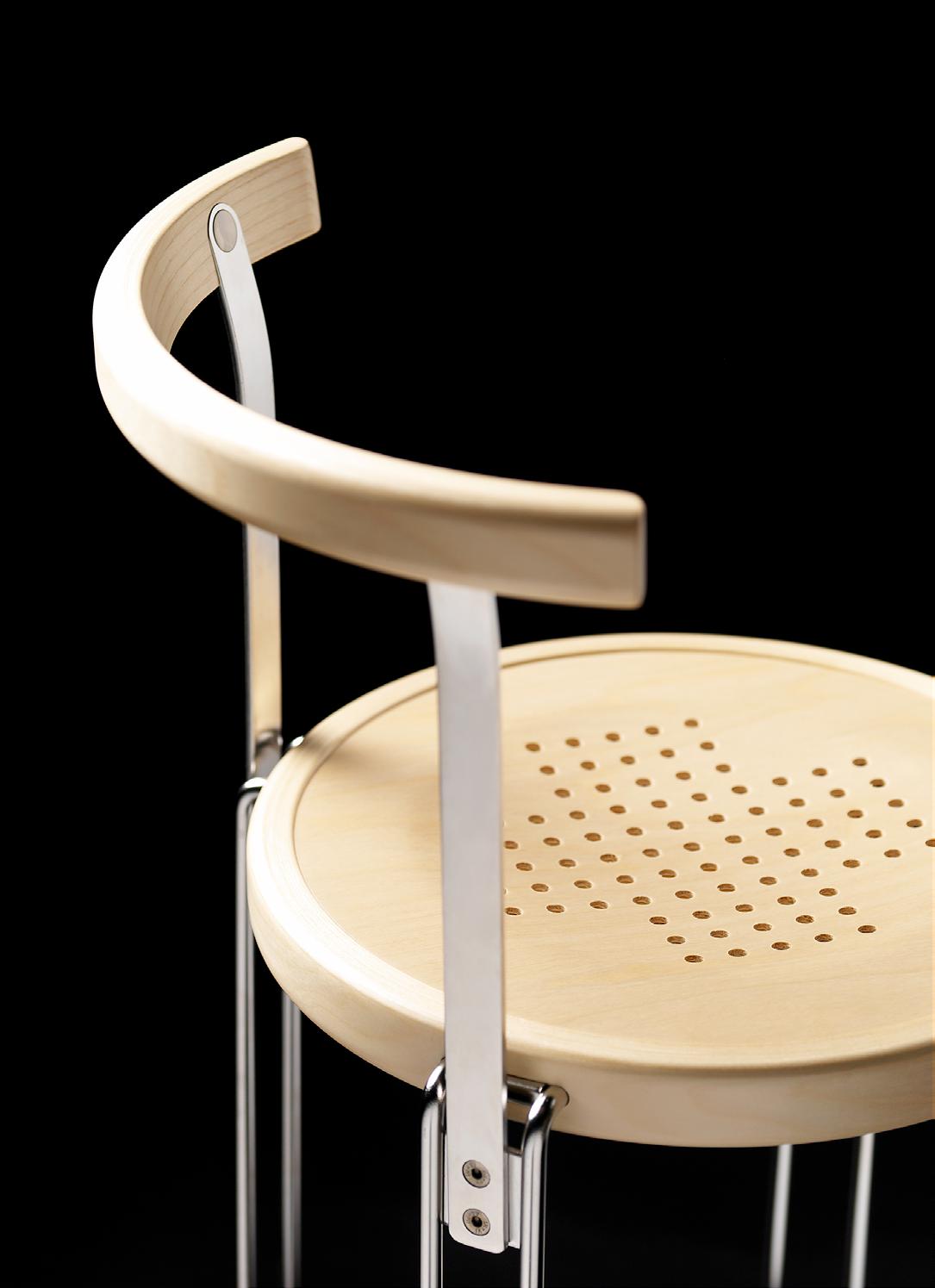 Ett viktproblem...Funktion och enkelhet. Cheese blev en nätt & lätt fällbar stol, enkel att bära med sig. För att förstärka visuell lätthet och vikt gjordes stora runda hål som i en schweizerost. Kraven satte ramarna för form och proportion och sin skenbart fragila konstruktion till trots höll stolen även för Möbelinstitutets hårda prov.