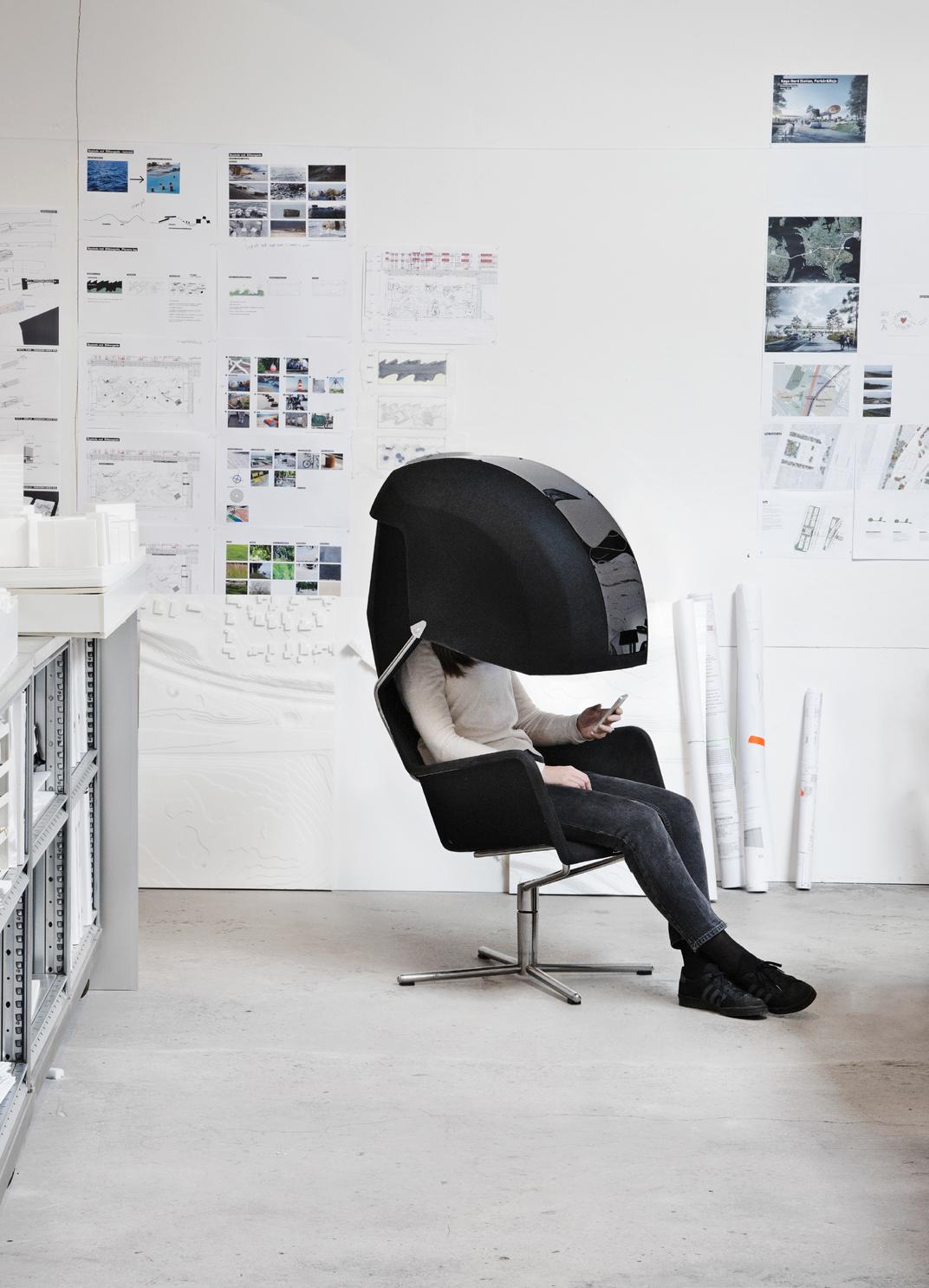 Född ur en tid där nya behov av avskildhet uppstått. Hur liten kunde man göra en space där man kände sig trygg? Arbetet började med Borselius tankar kring arkitektur, samhället och personers egen sfär. När huven fälls ner får man ett litet rum för sig själv och ger en tydlig markering att man inte vill bli störd. Som ett par solglasögon syns man knappt genom det mörka plexiglaset i huven, men ser tydligt vad som händer utanför.