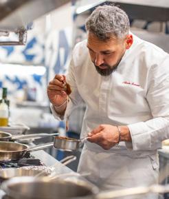La Vellutata di castagna con gamberi rossi e tartufo nero incontra la Guancia di vitello brasata con sedano rapa, salsa soubise e chips di topinambur. Le Busiate con crema di melanzane e salsa alla menta con pomodorini e ricotta salata si fondono in perfetta sintonia con l’Ombrina alla Mediterranea con olive, datterini, capperi in fiore e limone candito e il Fiore di zucca con ricotta Garfagnana e mayonese di acciughe. Un inno alla cucina mediterranea, al gusto e all’armonia, i piatti dello Chef Mario Cucchiara del Ristorante l’Olivo, destinazione gourmet del Grand Hotel Imperiale di Forte dei Marmi. Tradizione e innovazione definiscono una cucina di sapori decisi, mai banali, che unisce i profumi del mare di Sicilia e l’essenza forte della terra toscana. Saveurs perfetti per palati esigenti che cercano una cucina d’elezione. Il Ristorante L’Olivo è guidato da Massimo Bartolucci, Food & Beverage Manager anche del Ristorante Remo, aperto in alta stagione sulla spiaggia del Remo Beach Club. La lunga esperienza in Italia e all’estero del nostro F&B Manager garantisce accoglienza perfetta, una cantina ideale e un servizio impeccabile. Secondo stagione e tradizione, il gusto classico italiano è il pilastro della cucina di Mario Cucchiara e della sua brigata, che si rinnova ogni giorno con le eccellenze del territorio.