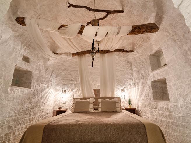 In Puglia, in the heart of the Itria Valley, the restaurant Leonardo ArteCibo at the Leonardo Trulli Resort offers a culinary experience that touches the heart. Surrounded by 17thcentury trulli and a late 19th-century masseria, this 14-room boutique hotel holds a unique gastronomic treasure.