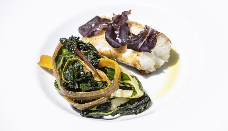 SEARED TURBOT WITH SAUTÉED SWISS CHARD IN EXTRA VIRGIN OLIVE OIL