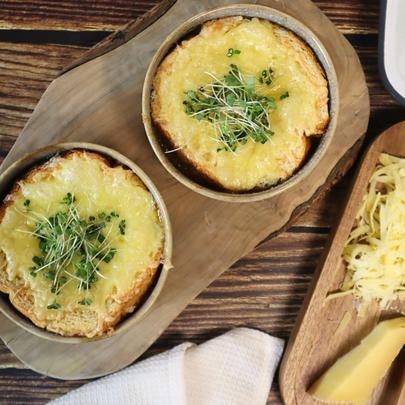Elevate the flavours of a classic French Onion Soup with our signature beef bouillon and red onion relish.