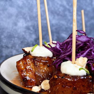 Crispy pork belly bites coated with Blenders American Mustard and finished with a generous glaze of Blenders Hot Honey. The rich pork and sweet heat create a bold flavour combination that works perfectly for sharing plates, pub menus or modern casual dining.