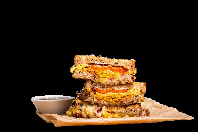 Elevate your vegan sandwich offerings with this bold, flavourpacked toastie. Blenders Vegan Mayonnaise and Sriracha combine with roasted red peppers, spiced chickpeas, and creamy vegan mozzarella for a cost-effective, protein-rich lunch option. The Sriracha-Caramel drizzle adds a sweet and spicy finish that’s sure to impress.