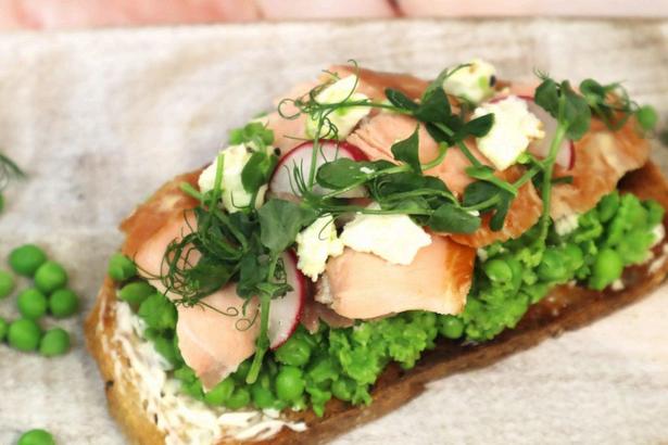 1.Pour the peas into a bowl and mash up using a fork or hand blender. Mash until the peas are spreadable and not watery. Add a pinch of salt and pepper and a squeeze of lemon. Toast your sourdough until it’s gold and crispy.