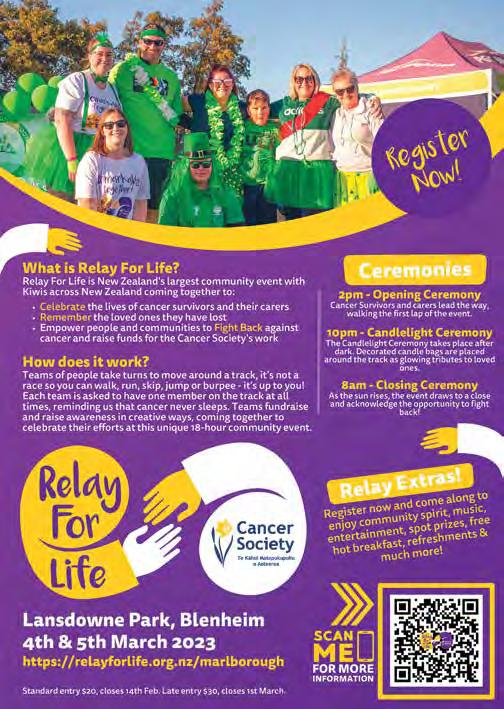 WednesdaySun Blenheim Marlborough The Phone us : 03 5777 868 Outlook for Today Mainly fine. Light winds. Sun Weather Today 10-25 Thursday 10-20 Friday 9-23 Saturday 12-24 February 8, 2023 Dads of Marlborough By Chris Valli A newly established group to support Marlborough Dads got off to a positive start last week. Dads of Marlborough Post Natal Group is a forum for dads to get together and discuss all things fatherhood. The group has been created with the help of Connect Marlborough. Continued on page 2. DaD support: Dads of Marlborough had their second session last week at Connect Marlborough. Facilitator Joni Morrissey says it was a fantastic turnout and great to see Dads spending quality time with each other and their respective babies. FRESH & HEALTHY THAI FOOD ON MAXWELL ROAD. Try our signature dish! Crunchy Chicken With Creamy Coconut Curry Sauce Plant-based chicken available as a vegetarian option! Bookings essential | Gift Vouchers available | 17a Maxwell Road | Blenheim | ph 03 578 4887 Order online at www.thelemongrass.co.nz Open 7 days for lunch and dinner. Dine in or takeaway. Ph: (03) 577 9498 sales@bpcomputers.co.nz Need a new computer? Come see us! Check out page 19 for our TOp DOgs!