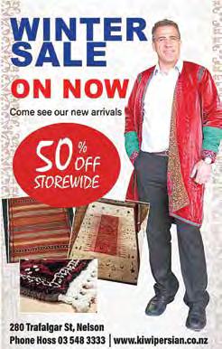 Sun The Wednesday July 12, 2023 5 19 Grove Road, Mayfield. Ph 577 8615 5 Boyce Street, Springlands. Ph 579 4964 Offer ends 23/07/2023. T&C’s apply. www.superliquor.co.nz Smirnoff red no. 21, gordon’S gin, Teacher’S 1 Litre Jack daniel’S or Jack daniel’S muSic Box 700ml uper dry, Tiger STal ulTra Bottles 12 x 330ml BaileyS 1 Litre Johnnie walker Black label 700ml SpeighT’S SummiT ulTra low carB lager or Steinlager calssic Bottles 24 x 300ml maJor maJor range 4.8-6% Cans 10 x2 330ml mounT gay eclipse gold rum or Jack daniel’S 1 Litre $ 5299 each $ 4199 each $89 2 for Single pack $49.99 $ 45 2 for Single pack $24.99 luna eSTaTe pinot noir or devil’S STaircaSe By rockBurn pinot noir 750ml Scrumpy range Bottles 1.25 Litre (Includes Apple, Ginger, Lemon, Raspberry) $ 50 2 for Single pack $27.99 $64 99 each $ 5799 each $20 2 for Single pack $11.99 $ 45 2 for Single pack $24.99 30% & more, 280 Trafalgar Street Nelson Phone Hoss 03 548 3333 or 027 408 6191 www.kiwipersian.co.nz $106 (GST incl) each time Booked for 11 Nov and 2 Dec