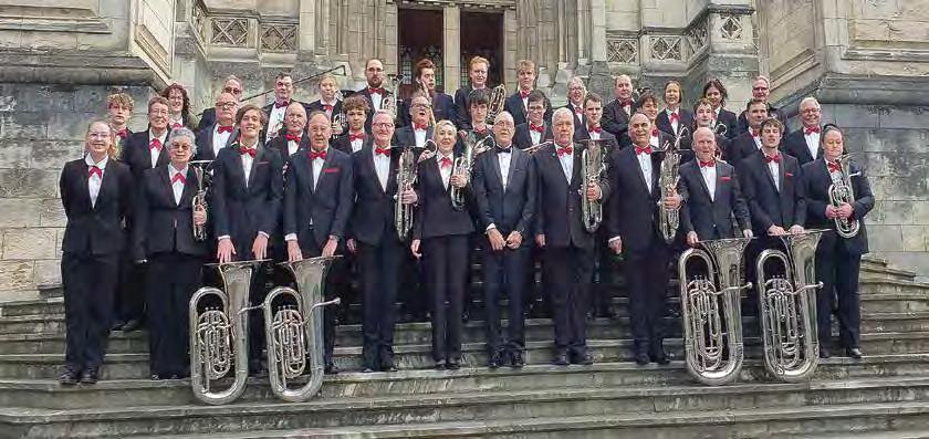 MARLBOROUGH PROUD: The Marlborough District Brass Band on the steps of St Paul's Cathedral in the Octagon, Dunedin.