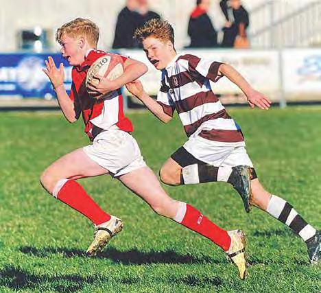 ABOVE: Marshall Coles beating a Golden Bay defender. Marshall was instrumental in the U52’s success and was named player of the tournament and scored nine tries in the four games.