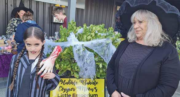 SPOOKY: Wednesday Adams - Eva MacDonald, with Hubble Bubble Witch - Angela McGhie (vendor) at the Vines Village monthly market last Wednesday. Photo: supplied.