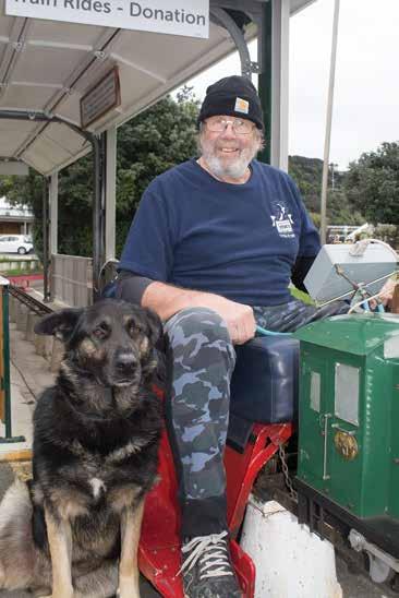 Bob Metcalf with German Shepherd Toot, named in recognition of the Picton mini railway.