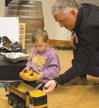 Two-and-a-half-year-old Arley Marshall tries out his driving skills with some help from Port Marlborough’s Workshop Manager Jimmy Giles. Photo: Paula Hulburt.