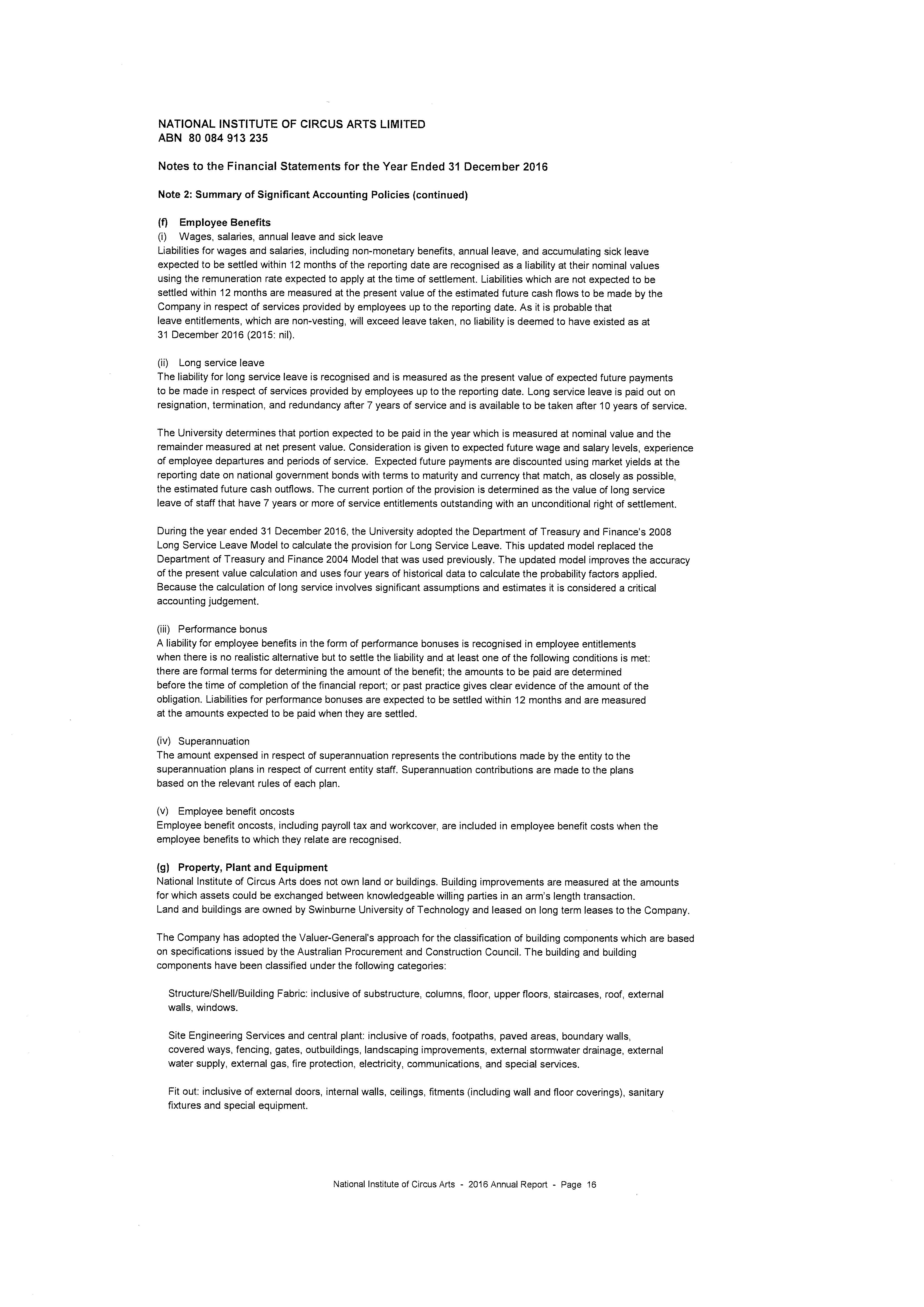 The following pages describe in detail another successful year: performance highlights, news about our community outreach programs, international and national projects, graduate destinations and a range of events of special mention. It was an eventful year, with future planning at the forefront of activities. NICA’s position at the conclusion of 2016 will see the organisation move forward into 2017 with the following initiatives: implementation of Stage 1 of the Master Building Plan; reaccreditation of the degree program; international exchanges and study tours; strengthening our outreach programs, and continuation of our research project of developing a circus pedagogy database.
