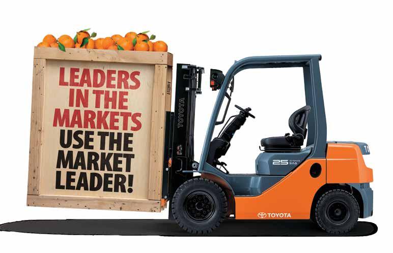 24 ISSUE 64 SEPTEMBER 2022 Toyota Material Handling is the forklift leader in Australia’s fresh fruit and vegetable markets. 1800 425 438 www.toyotamaterialhandling.com.au Toyota Material Handling offer • New Sales • Pre-owned • Rentals • Finance • Service and Parts To make the smart choice and discover how Toyota Material Handling can make a difference to your operations, contact your local branch 1. Proven performers in the fruit and vegetable markets environment 2. New and used forklift purchase, rental or lease options 3. Superior service and parts back-up and support 4. Massive range with Toyota Material Handling’s world leading products 5. Flexible finance deals through Toyota Finance 6. Stability of dealing with the world’s largest forklift company Hand Pallet Trucks Power Pallet Trucks Order Pickers Walkie Stackers Reach Forklifts Battery Counterbalance Engine Counterbalance Elevated Work Platforms Sweepers & Scrubbers