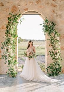 La Rio Mansion features luxurious, elegant Spanish-style architecture, immaculate landscaping, and a breathtaking backdrop of 37 acres backed by the Leon River and sprawling oak trees. La Rio Mansion features two ceremony locations and a luxurious outdoor reception space overlooking lush fields, magically lit with draped cafe lighting, and fully furnished with fruitwood chivari chairs and round guest tables for up to 250 guests. Looking for an indoor option? La Rio Mansion also features an air-conditioned 5,000sq ft ballroom with up to 350 guests seated capacity.