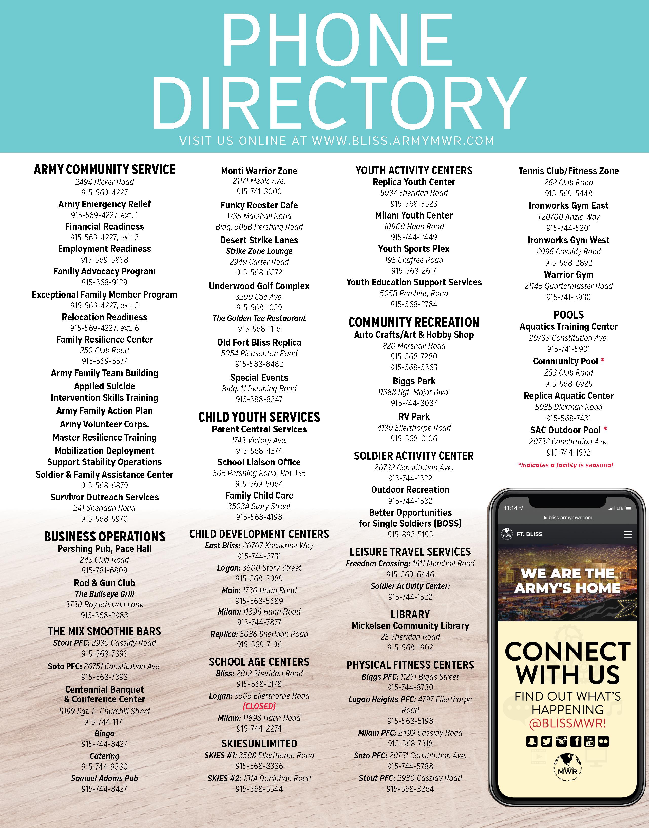 BlissNOW is a Family and Morale, Welfare and Recreation magazine published monthly for activities on Fort Bliss, Texas. BlissNOW is mailed to all Fort Bliss homes inserted in welcome packets, and distributed to all Family and MWR facilities, along with the Fort Bliss Commissary, Post Exchange at Freedom Crossing, IHG Army Hotels Fort Bliss and the Personnel Processing Center. Circulation: 10,000 monthy. The appearance of advertising does not constitute an endorsement by the U.S. Army, Department of Defense or federal government. The information in this issue is current at the time of publication; activities and events are subject to change without notice. Downloading of any social media apps is on a voluntary basis. DFMWR is not responsible for any negative consequences resulting in its use. For more information, call the individual facilities. Family and MWR Marketing is located in Building 12 Pershing Road Fort Bliss, TX 79916 and may be reached at 915-568-6741.