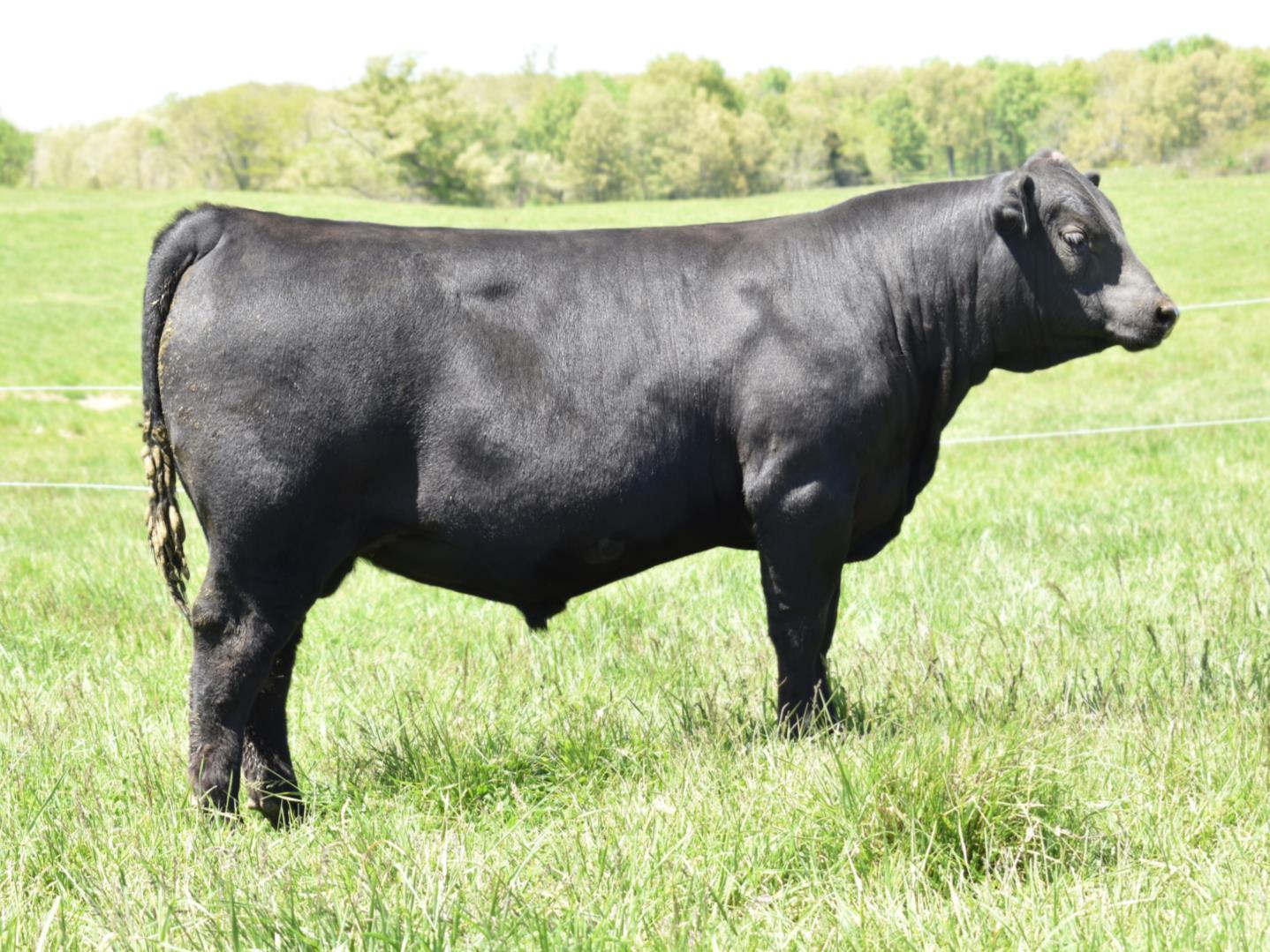 A neatly designed, high performing bull with a ton of natural thickness. Lots of rib depth, smooth shouldered and sound. A really quiet attitude out of our most docile mature cow. Calving ease and performance combination that will excel in any breeding situation.