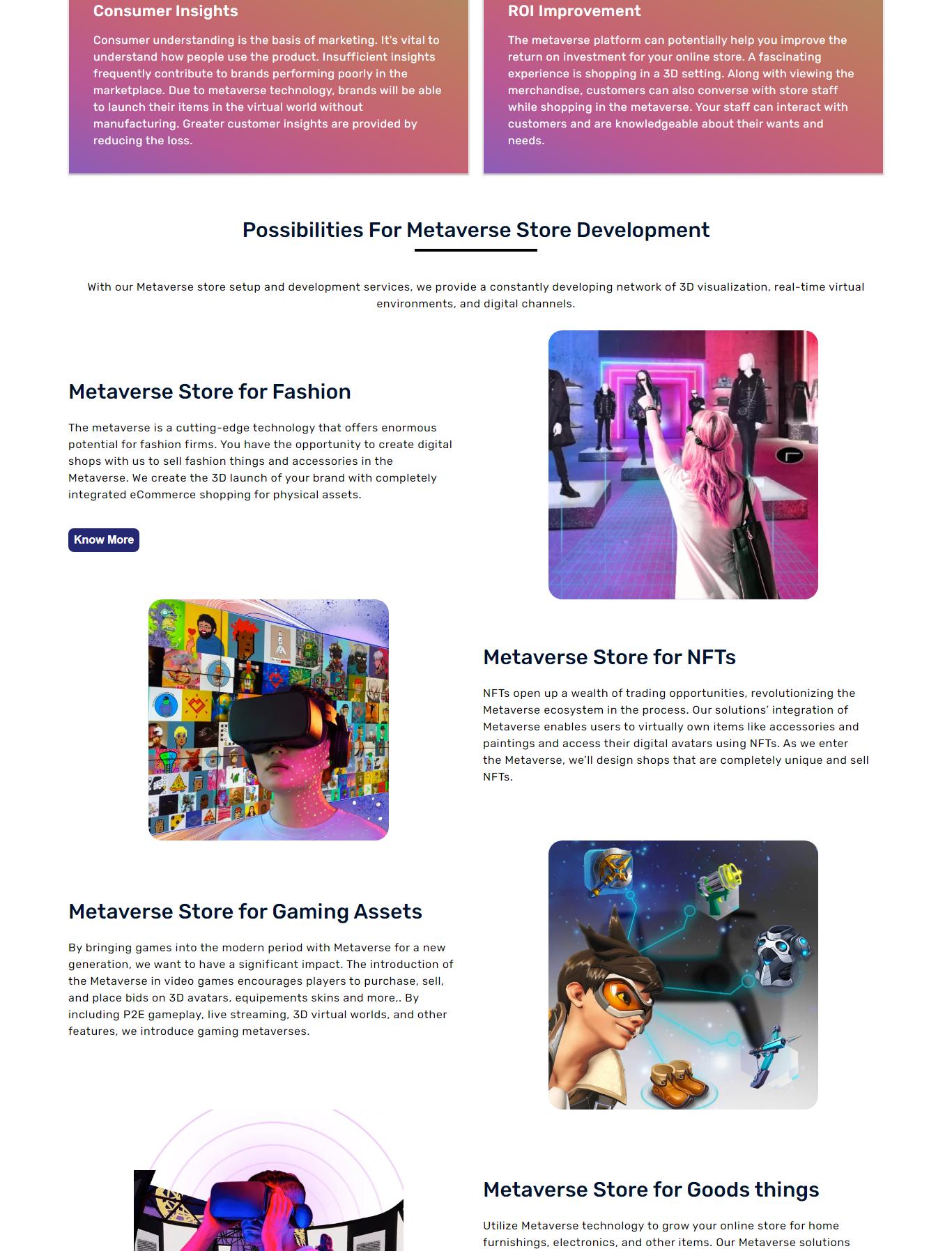 Retailers will be able to expand in the billion-dollar store market thanks to Metaverse. Technology and its inventions have dramatically changed the industry. Customers have immersive and interactive purchasing items experiences with the metaverse. We make use of Metaverse’s promise to use AR, VR, blockchain, and IoT to close the gap between the brands and customers. We offer an ever-expanding network of 3D visualization, real-time virtual environments, and digital channels with our setup with Metaverse store development services.