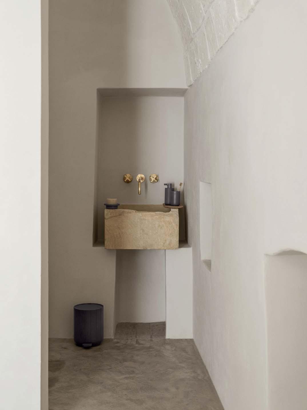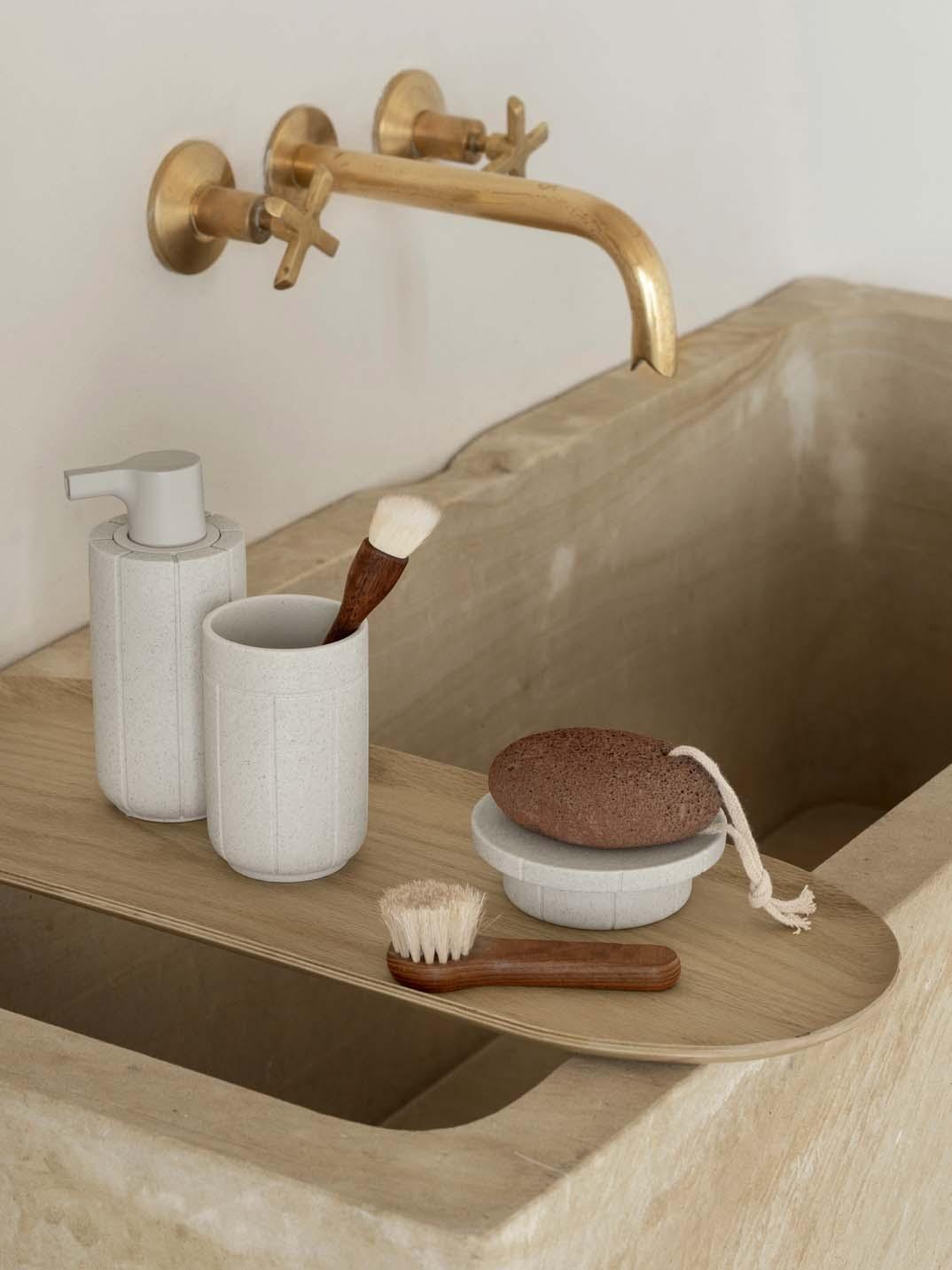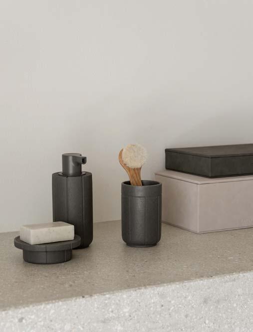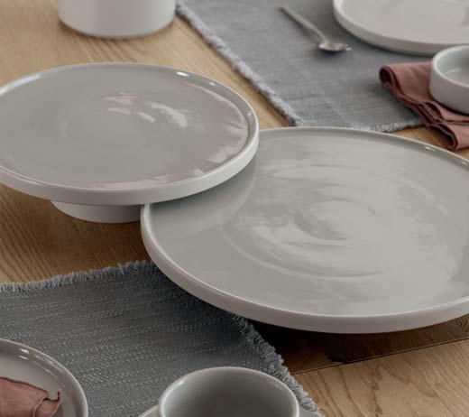 Stoneware is manufactured from clay, quartz or minerals such as calcite and is defined as a group of ceramic products. Stoneware is used to produce plates, dishes, cachepots and bowls, moulded at very high temperatures using special casting techniques. The high temperatures during the firing process make stoneware more stable than clay and less translucent than porcelain. The colours depend on the firing temperature and time. Therefore, each piece can show individual structures and shades. As stoneware is not watertight in itself, it is often glazed.