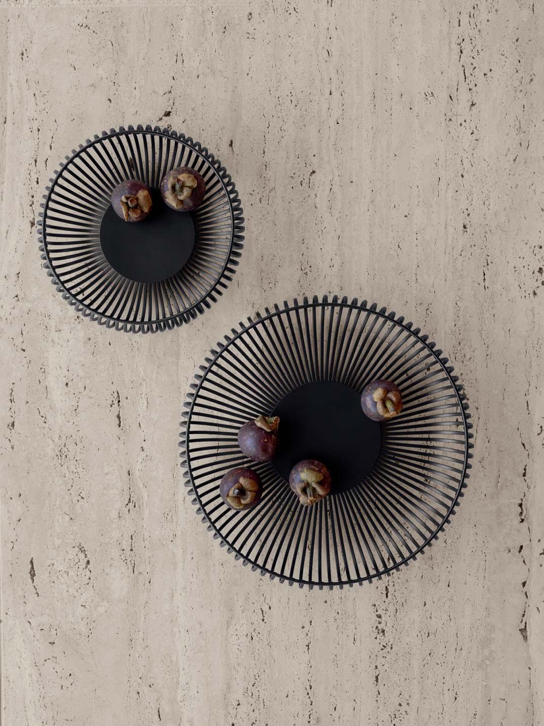 The LOHA vases are the perfect container for dried or plastic flowers. Both sizes impress with their unique ring structure. The powder-coated metal gives the vases a matt elegance and provides a harmonious contrast to the vibrant colours of flowers. The delicate rings are reflected both in the outer surface and on the side as a holder, so that they complement each other perfectly.